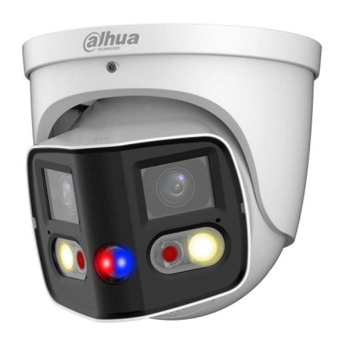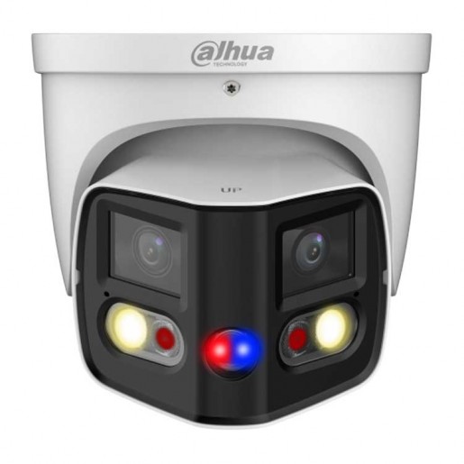 2x 4Мп; 1/2.7” CMOS; моторизованный объектив 2.8мм; WDR(120дБ); чувствительность 0.005лк@F1.4; сжатие: H.265+, H.265, H.264+, H.264, MJPEG; 3 потока до 4096x1860@20к/с; видеоаналитика: SMD 4.0 (интеллектуальный детектор движения), пересечение линии, контроль зоны; тревожные вх/вых: 1/1; аудиовх/вых: 1/1; встроенные микрофон и громкоговоритель; LED-подсветка до 20м, ИК-подсветка 25м; сигнализация красно-синей подсветкой; MicroSD до 256Гбайт; защита: IP67; питание: 12В(DC), PoE; корпус: металл"